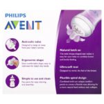 Avent Natural Feeding Bottle 0m+ is easy to combine with breastfeeding. It has wide breast-shaped teat for natural latch on, ultra-soft teat mimics the feel of the breast and anti-colic valve designed to reduce colic and discomfort.