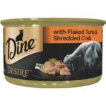 Effortless, elegant and supremely confident, cats are the masters of seduction. Their abundant natural charm is never more beautifully deployed than when they want something from you. The DINE brand includes gorgeous food designed to tempt the feline senses of both you and your cat, enabling you to turn your mealtimes into a delightful game of mutual seduction. DINE DESIREâ„¢ is a range of delicious meals for your cat, created from enticing ingredients, carefully chosen and hand prepared using quality Tuna and Crab. Even the most discerning feline will be tempted by DINE DESIREâ„¢ with Flaked Tuna and Shredded Crab Premium Cat Food. It’s a tantalizing seafood flavour with an easy on the tongue texture.