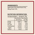 Apple Purée] (72%), Peach Purée] (15%), Mango Purée (13%).