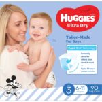 - Huggies Ultra Dry Nappies are available in size 3 (6-11kg), 4 (10-15Kg), 5 (13-18kg) and 6 (16+kg).
