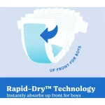 - Tailor-made absorbency perfectly suited for baby boys. Targeted absorbency up front where boys need it most.